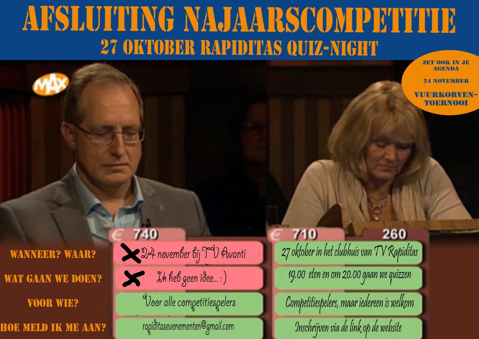 Hieronder kun je je aanmelden voor de afsluiting van de najaarscompetitie van Rapiditas. Gezellig met alle teams nog een laatste knaller van een avond hebben, wij zijn er klaar voor!