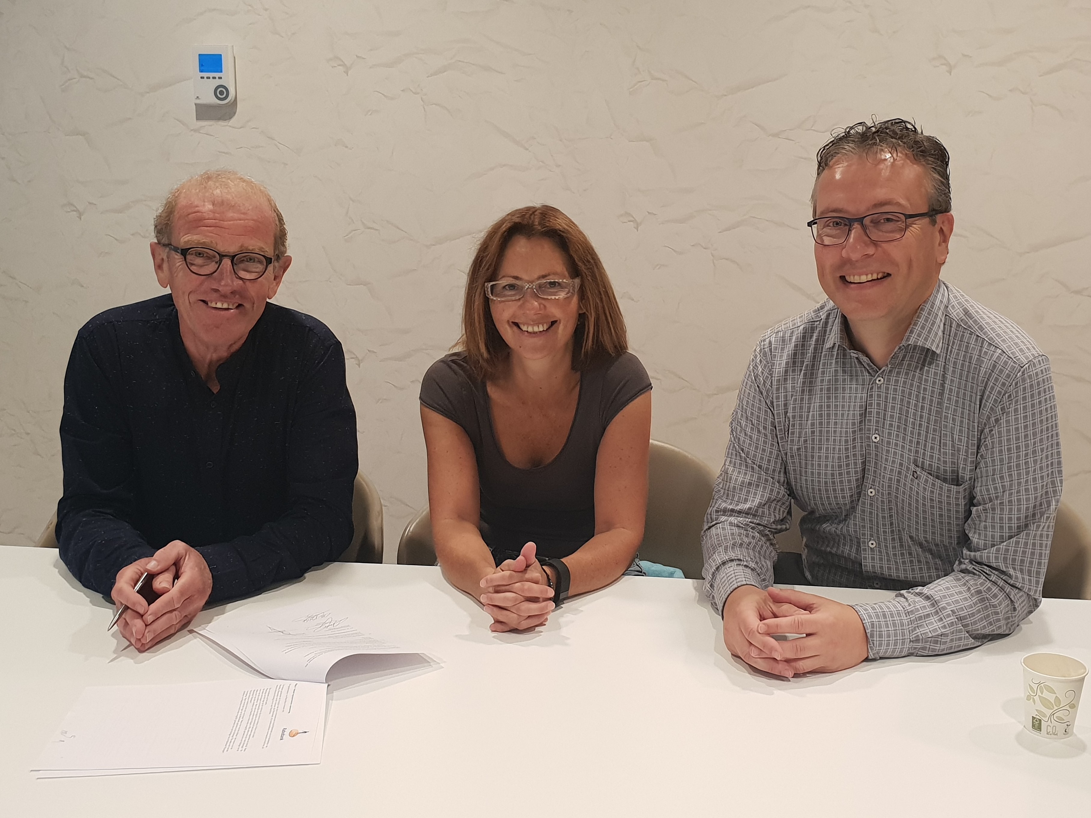 De overeenkomst van Rapiditas met de Rabobank Rijk van Nijmegen is op 26 september 2018 ondertekend. (Op de foto vanaf links: Cas van de Groes voorzitter Rapiditas; Maureen Völler vicevoorzitter Rapiditas en Gerjo Schepers Rabobank).